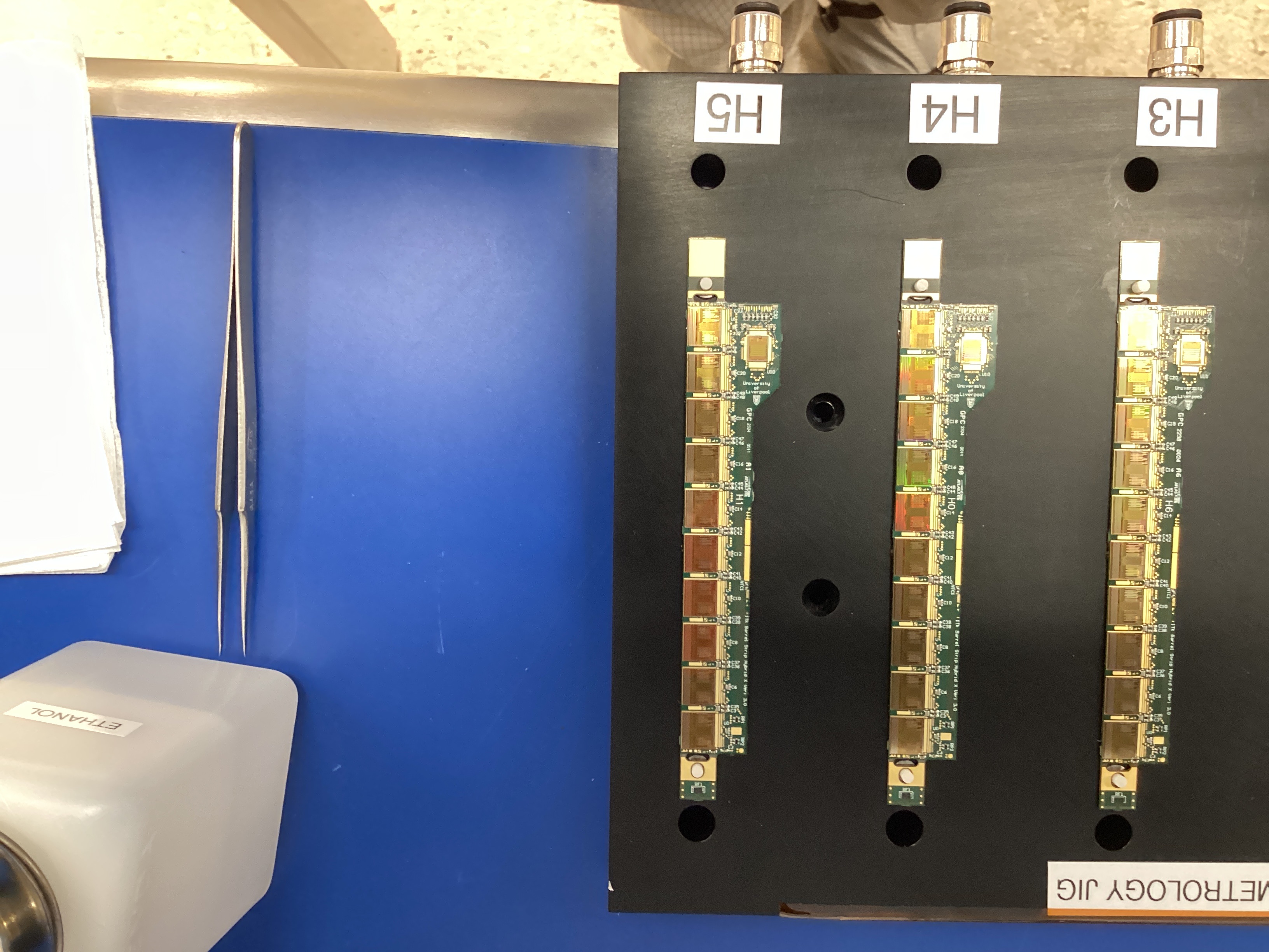 These measured positions are compared against the technical drawns to calculated the relative ASIC position.